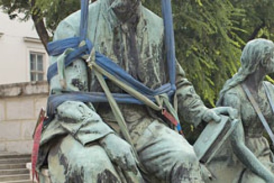 Csütörtökön szállították el és kezdték meg a restaurálását a budapesti Magyar Nemzeti Múzeum kertjéb...