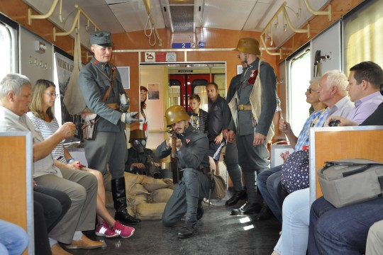 A vonat begördül Most na Sociba. Idegenvezetőink tudtunkra adják, hogy megemlékező esemény részesei...
