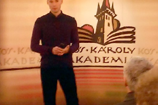 A marosvásárhelyi Bolyai téri unitárius egyházközség Dersi János-termében Duha László fafaragó örmén...