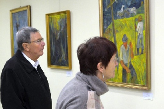 Érdeklődők a 2012-ben elhunyt Páll Lajos festőművész, költő csaknem ötven tájképét és figurális fest...