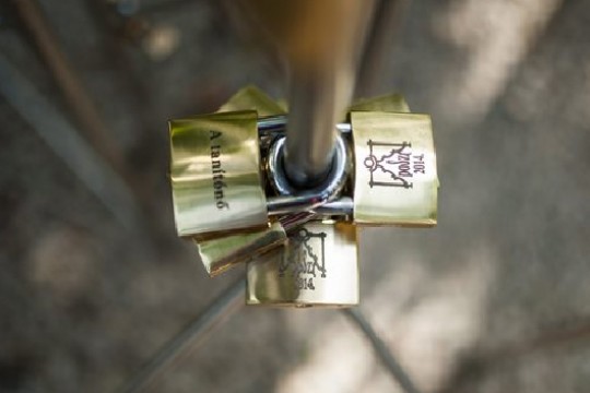 Az idei Pécsi Országos Színházi Találkozó (POSZT) versenydarabjait jelképező lakatokat helyezett el...